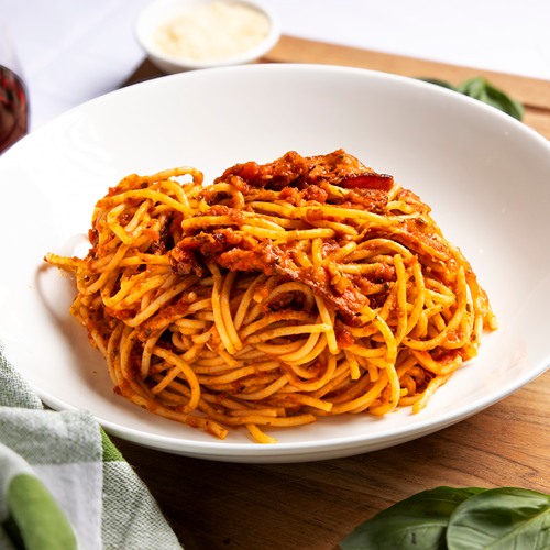 Tomato Base, Bacon, Slow-Cooked Beef, Spanish Onion, Roasted Capsicum and Mozzarella topped with Special Sauce