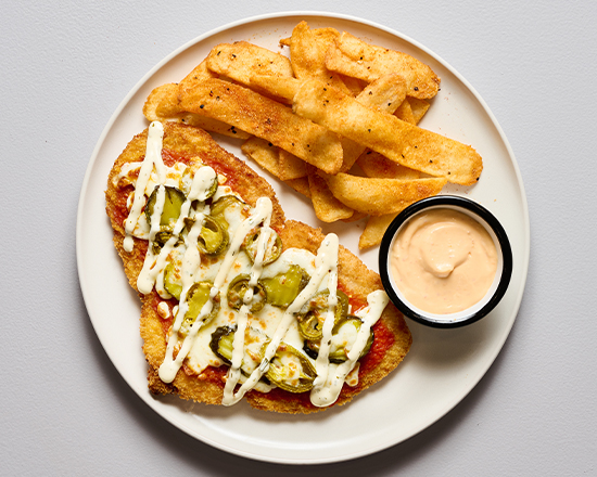 Tomato Base, Slow-Cooked Chicken, Spring Onion, Roasted Capsicum, Feta Cheese, Mozzarella and Chilli Flakes topped with Peri Peri Mayo and Fresh Lemon