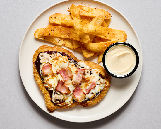 Tomato Base, Mushrooms, Capsicum, Spanish Onion, Mozzarella, topped with Peri Peri Mayo