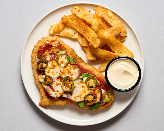 Tomato Base, Mushrooms, Capsicum, Spanish Onion, Mozzarella, topped with Peri Peri Mayo