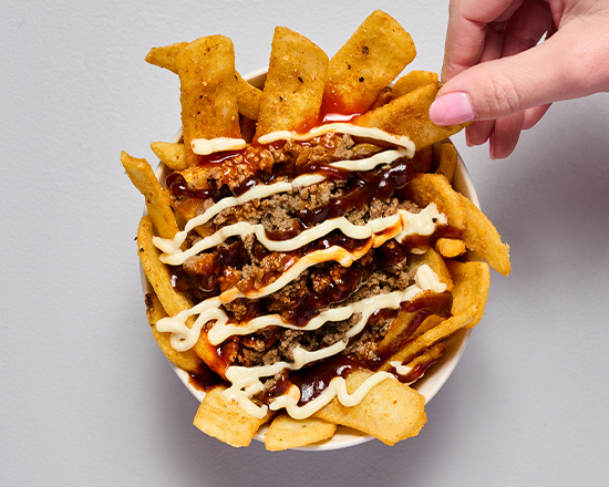 BBQ Base, Slow-Cooked Beef, Spanish Onion and Mozzarella topped with Aioli